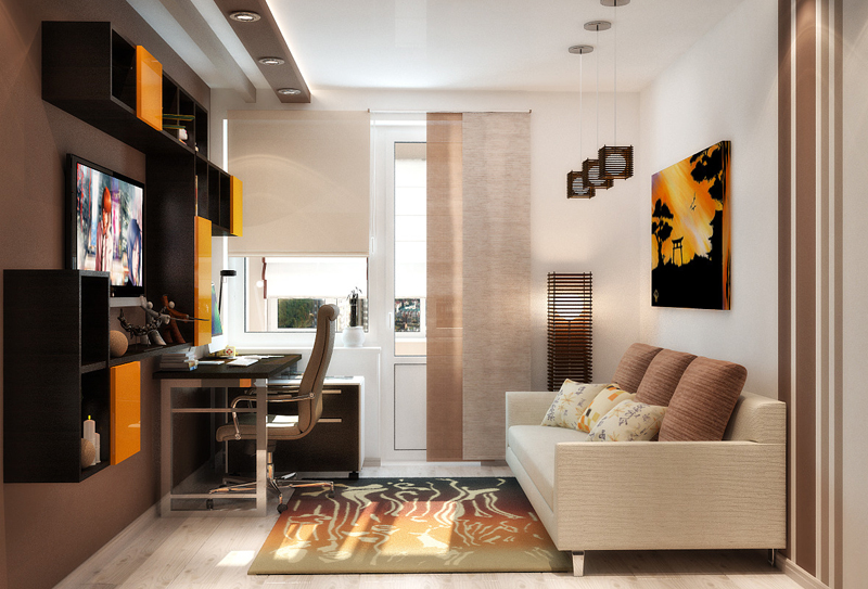 Кроме стекла, кстати, есть еще и мебель, которую мы обязательно покрасим в противоположный фону цвет. А можно и не красить или же покрасить в тот же цвет, что у отделки (если она светлая). Такой прием хорош для встраиваемых шкафов, которые мы обычно приобретаем, будучи недовольными тесной жилой площадью зала и, соответственно, будучи желающими эту площадь не загромождать (в нашем случае не загромождать визуально). Если не хочется ставить шкаф, то можно создать ниши. Их мы будем отделывать тонкими панелями. Что же до отделки самих стен, то здесь полет фантазии поистине велик - практичные обои, песчаная венецианка, имитация кирпичной кладки. Последнюю можно использовать лишь на одной стене помещения.